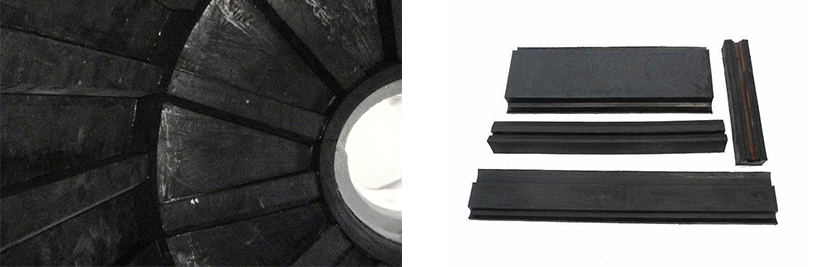 橡膠襯板采用專用配方,經(jīng)高壓硫化處理,耐磨性能大幅提高使用壽命是猛鋼襯板1.5-2倍左右,橡膠自身的彈性緩沖大大降低了激烈沖擊力;